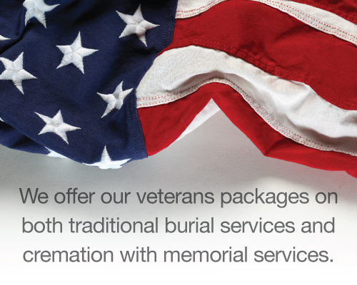 We are honored to help families of veterans, working to ensure that all veterans receive the honors earned through their service. We offer funerals with military honors, coordination of earned benefits, and special veterans discounts.
